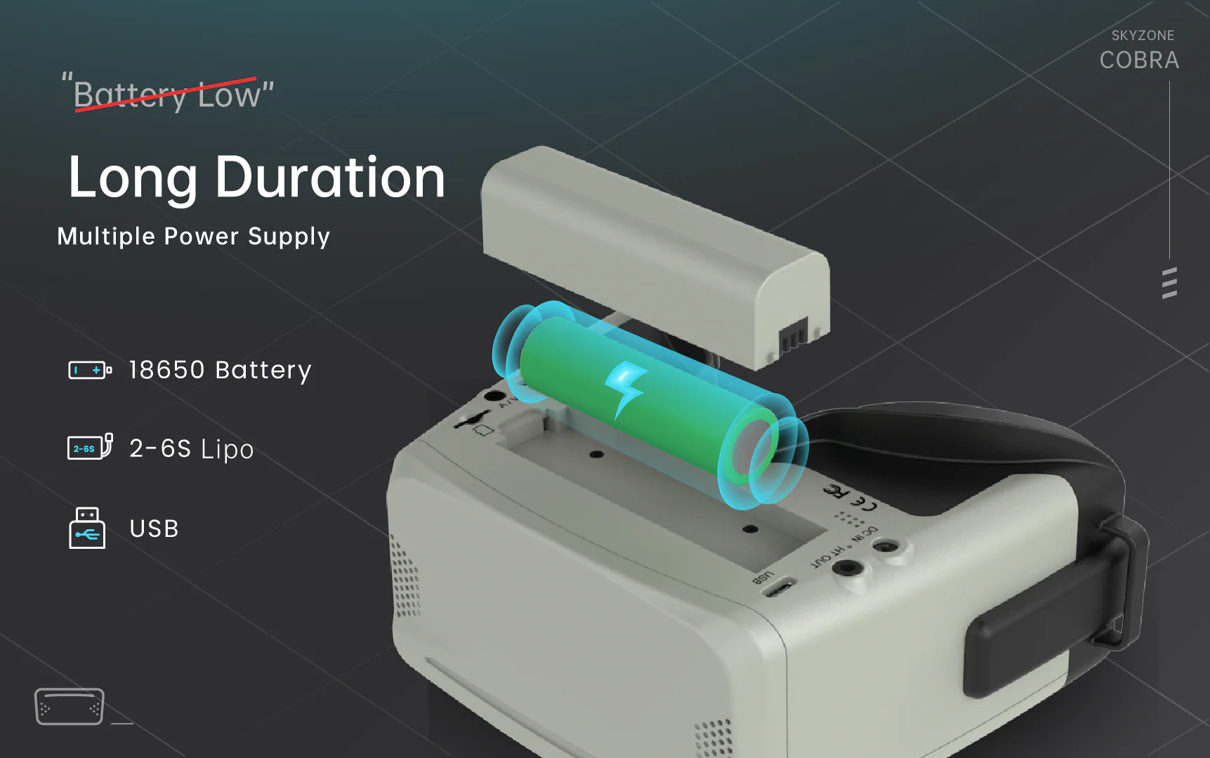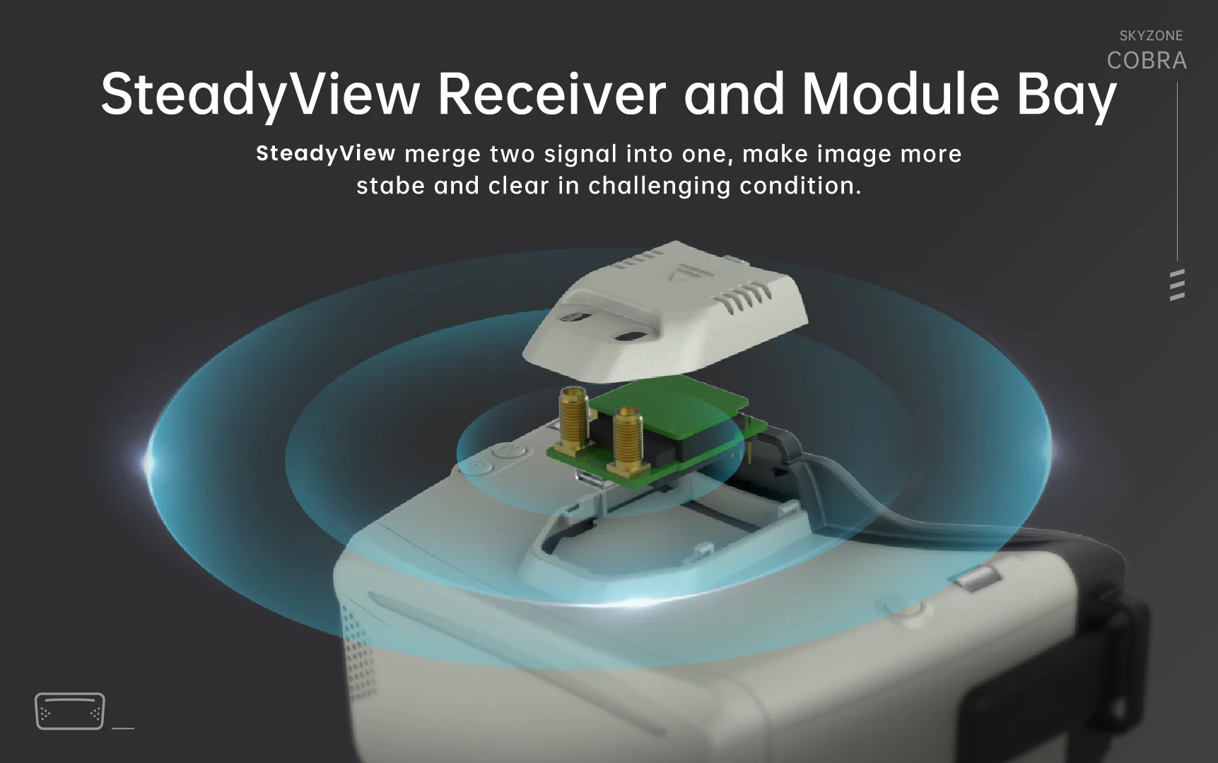 SKYZONE Cobra X goggle is the best FPV drone box, featuring a 4:3/16:9 switchable LCD screen. The SKYZONE Cobra X for RC airplane racing drone screen has vivid color and high luminance, and the pilot can see more details in the Racing. With the SteadyView receiver, the SKYZONE Cobra X receiver merges two signals into one, avoiding image tearing and rolling when the signal is weak, and making the image more stable and clear in challenging conditions.